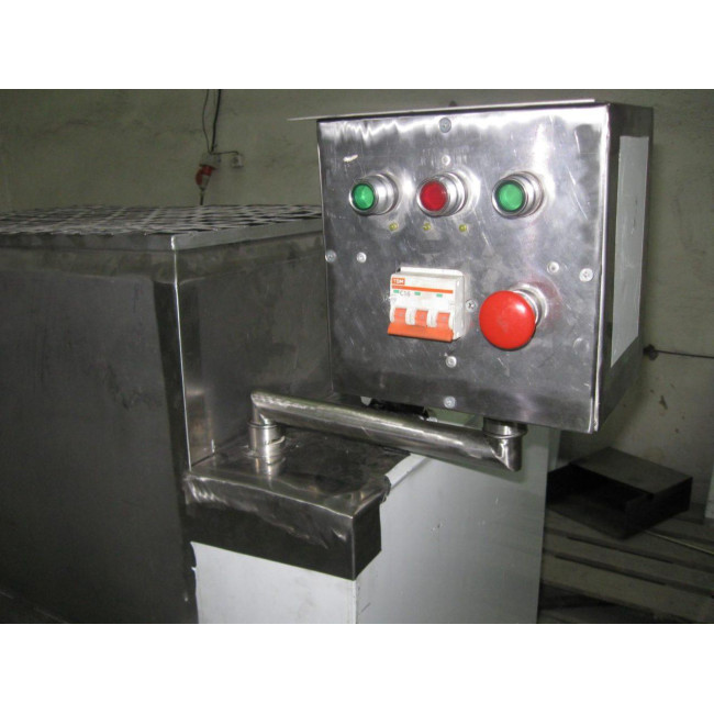 Блок управления фаршемешалкой расположен внутри рамы на шасси одной из боковых панелей и закрыт кожухом. От попадания влаги на блок управления, кожух установлен на герметизирующих прокладках.