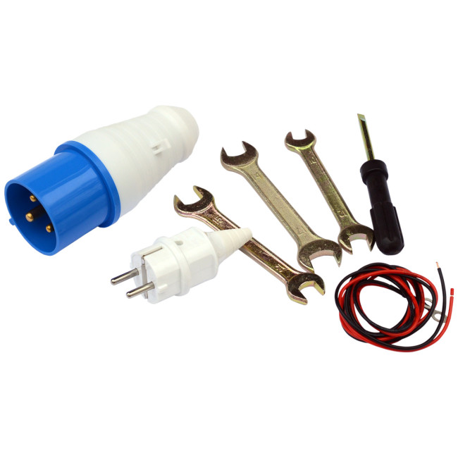 | Комплектация | Электрическая вилка, разъем для АВР, комплект проводов, ручки и колёса |