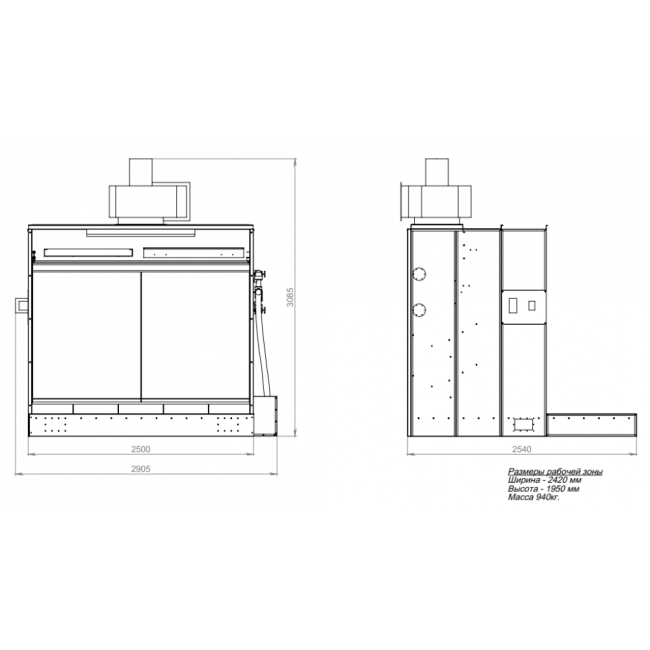 | Размер рабочей зоны ДxГ, мм | 2420х1600 |