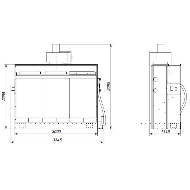 | Размер корпуса с вентилятором ДхГхВ, мм | 3440х1050х3130 |